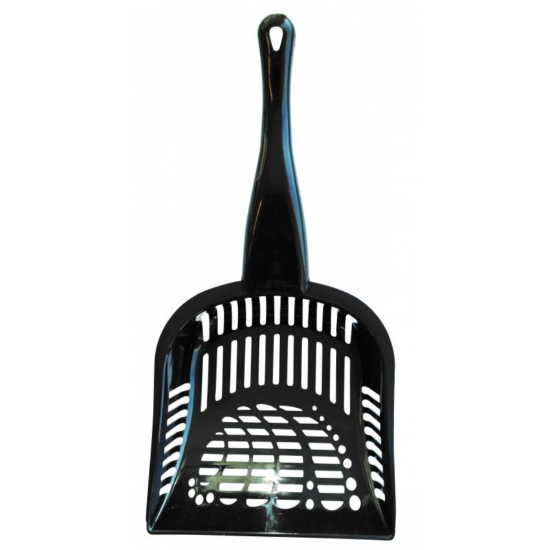 Très grande et solide, cette pelle à litière permet de tamiser le gravier pour une élimination quotidienne rigoureuse des fèces de votre chat.