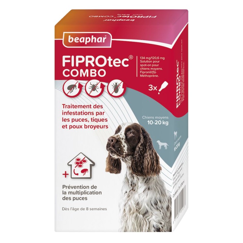 FIPROtec® COMBO 134mg/120,6mg Solution pour spot-on pour chiens moyens.