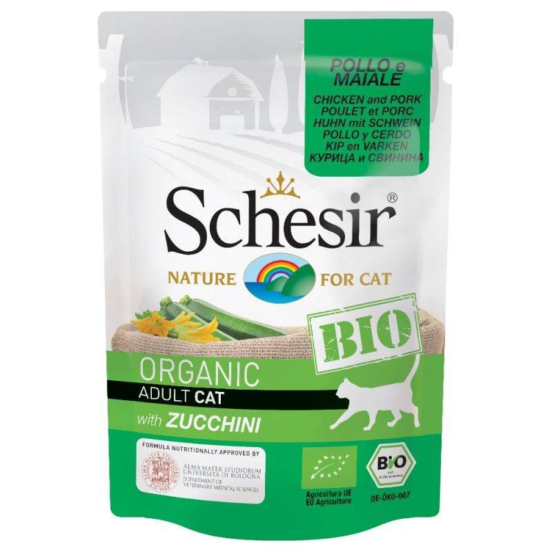 Nous vous proposons aussi les nouvelles recettes de pâtée pour chat Bio SCHESIR, une alimentation humide pour chat de grande qualité certifié bio, avec des protéines animales comme ingrédient principal, recette digeste, non testée sur les animaux.