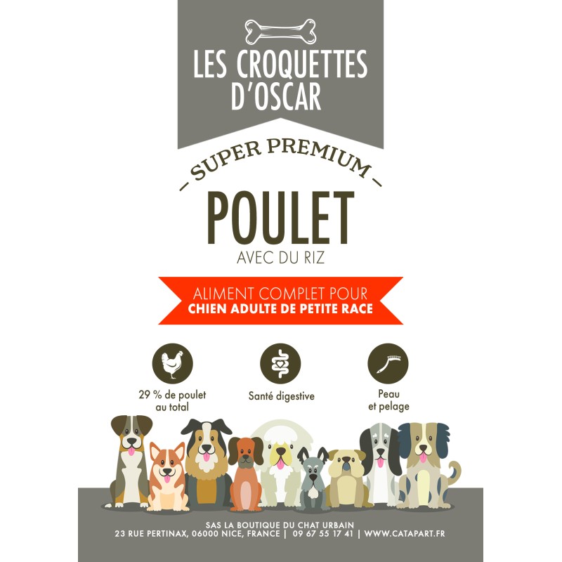 Les croquettes naturelles à petit prix pour petit chien au Poulet et rizde chez Les Croquettes d'Oscar, bénéficie d’un large éventail de sources de protéines de qualité. Cette recette présente une sélection de compositions hypoallergéniques dépourvues des allergènes alimentaires les plus courants pour les chiens (bœuf, porc, blé, gluten de blé, produits laitiers et soja). Ces croquettes naturelles et de qualité supérieur contiennent 29 % de poulet au total, ne source de protéines hautement digestibles et d’origine responsable. Contient aussi de la pulpe de betterave, une excellente source de fibres alimentaires solubles et insolubles.