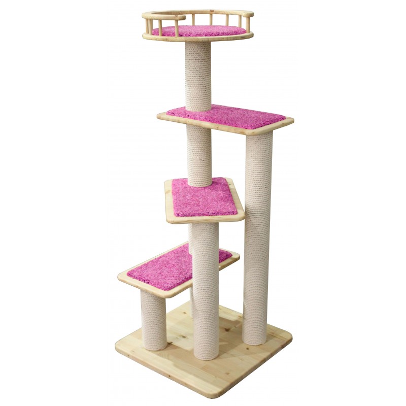 Cet arbre à chat en bois massif de haute qualité est recouverte d'un revêtement de moquette très résistante. Les poteaux à griffer en coton très résistants sont conçus pour répondre aux griffades de votre chat. La forme en escalier est parfaite pour que votre chat puisse y grimper facilement.
