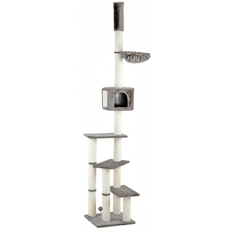 Cet arbre à chat très haut monte jusqu'au plafond et offre beaucoup d'espaces de repos, de jeu et d'observation à votre matou. Il est idéal pour les foyers comportant plusieurs chats, ou pour les animaux présentant un besoin important de grimper et de prendre de la hauteur. Peu encombrant, il permet d'agrandir le territoire de votre animal sans prendre de place au sol.