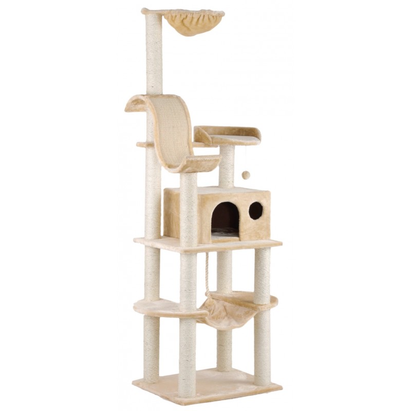 - plusieurs niveaux de pieds à griffer et un griffoir diagonal en sisal tressé (très attractif et résistant aux assauts des griffes les plus acérées !)