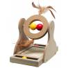 Un jouet en bois pour les chats. Cela peut surprendre : normalement, les jouets réalisés dans cette matière sont réservés aux enfants. Néanmoins, cet accessoire est bien à destination de vos chats et chatons. Ce produit s'adresse surtout aux chats qui s'ennuient à la maison. Il se présente sous la forme d'un plateau de 30 centimètres de long, de 17 centimètres de profondeur et de 20 centimètres de haut. Il prend donc peu de place. Facile d'utilisation, il est aussi très simple à monter. Le chat pourra jouer avec les balles et les plumes présentes sur le jouet, en les faisant tourner.